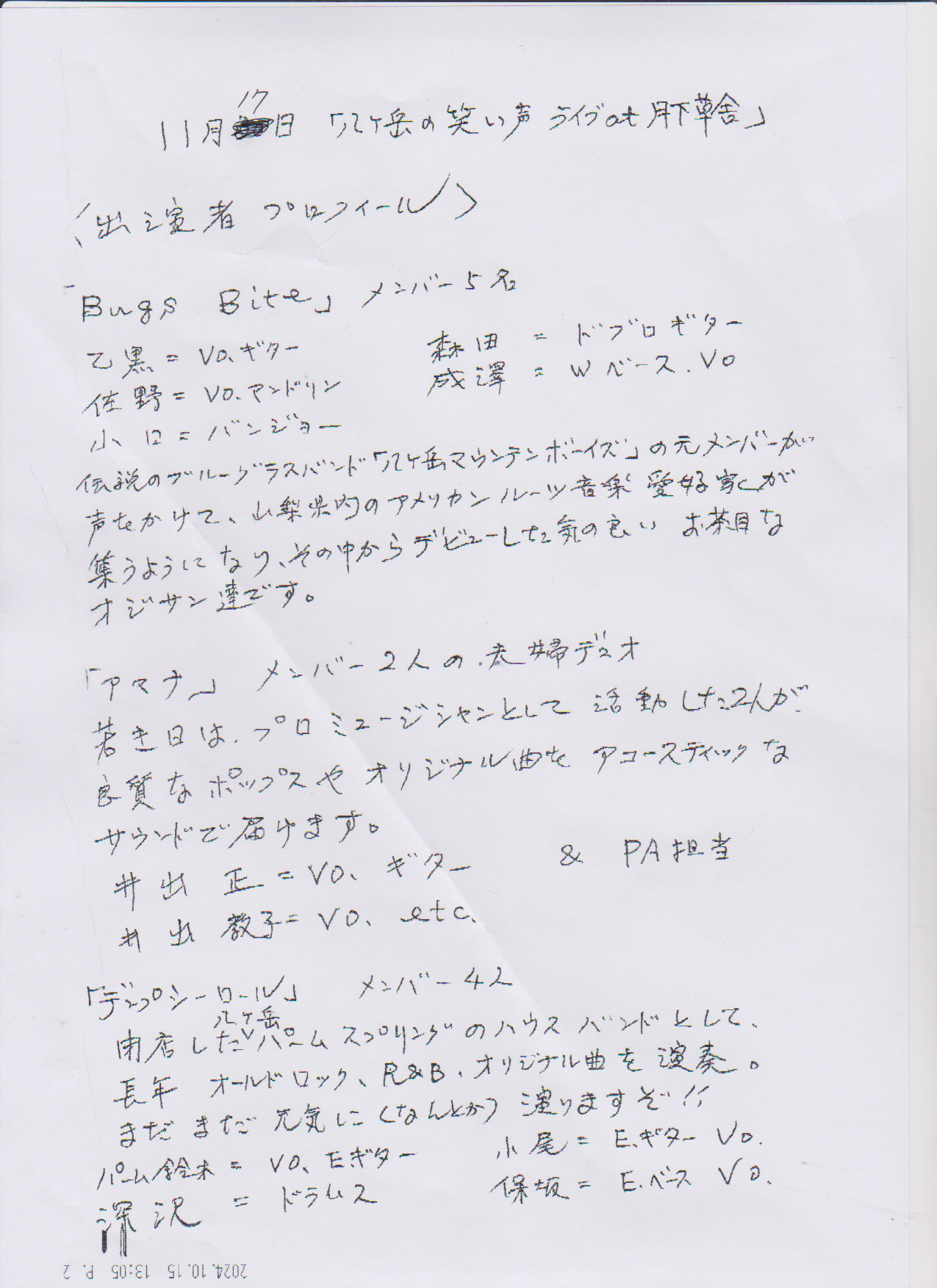 | 出演者 | 舞音Maito(vocal bandoneon contrabass) ナナマリ(vocal guitar) with ダン本多(produce synthesizer) |